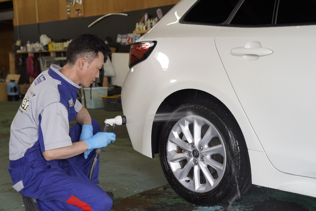 “K-Style(ケースタイル)”はお客様と車に対して細やかな気遣いを心がけており、ボディやホイールなどの手洗い洗車をするときは必ず最初から最後まで純水を使っています。純水は水道水に溶け込んでいるマグネシウムやナトリウムなどが除去されて不純物が少ない水なので手洗い洗車の跡やシミが発生しにくく、とても美しく仕上がります。また、西尾市を始めとした周辺地域の同業他社でも最初から最後まで純水を使っている業者は少ないため、業者による洗車をご依頼したい方は、“K-Style(ケースタイル)”をご活用ください。